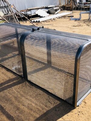 Angle iron lift off cage with two lock boxes-tan-1